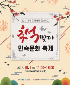 미리보기2017추석맞이민속문화축제가인천남구소재인천도호부청사에서열린다.인천광역시(시장유정복)는10월5일11시부터인천도호부청사에서민족최대명절인추석에온가족이함께전통문화를체험하...