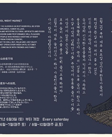 미리보기서울남산골한옥마을은오는6월3일(토)오후5시에서10시까지새로운테마형관광상품‘1890남산골야시장’을개최한다.이번남산골한옥마을야간행사는6월부터10월말까지매주주말(6~7월매주토/8~10...