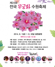 미리보기수원시(시장염태영)는8월1일부터3일간효원공원일대에서제24회전국무궁화수원축제를성료했다. 나라꽃무궁화를국민들에게널리알리고나라사랑의마음을심어주는이축제는축하공연,...