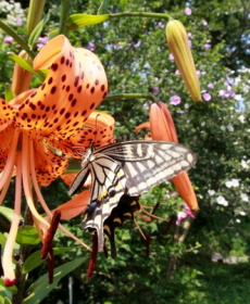 미리보기포항시북구청하면기청산식물원에활짝핀야생화말나리에나비한마리가날아들고있다.