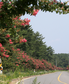 미리보기한여름에만개해100일동안꽃이붉게핀다는뜻을지닌백일홍이서천군서면도둔리에위치한춘장대해수욕장가는해안도로를따라아름다운자태를뽐내고있다.백일홍이만발한해안도로는종천...