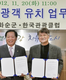 미리보기한국관광클럽(회장이정환)과화순군(군수홍이식)은2112년11월20일군청소회의실에서 상호신의성실의원칙아래국내,외관광객을화순군으로유치하는데공동으로노력하기위한 MOU...