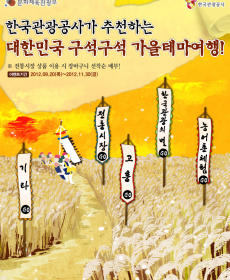 미리보기문화체육관광부(장관최광식)와한국관광공사(사장이참)는대한민국구석구석공식여행사*와함께한국관광의별,고흥,농어촌체험,전통시장을테마로한가을상품을발표하였다. ‘한국관...