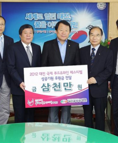 미리보기대전중앙청과(주)(회장송성철)가2012대전푸드&와인페스티벌성공개최를기원하며3000만원을후원했다. 대전광역시에따르면2일오전시청에서염홍철대전시장,송성철대전중앙청과(주)회...