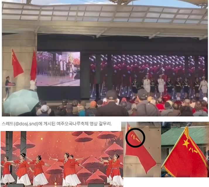 중국의 오성홍기가 아닌 중국공산당 군대 즉 중공군기 가 펄럭이네요..