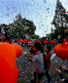하늘에서 종이 꽃이 내린다