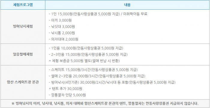 안동암산얼음축제 유료체험안내