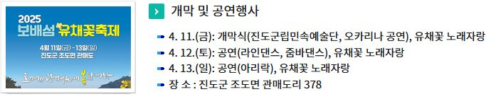 태그2025 보배섬유채꽃축제관매도 유채꽃 축제군내농공단지군내호수공원진도 봄꽃축제