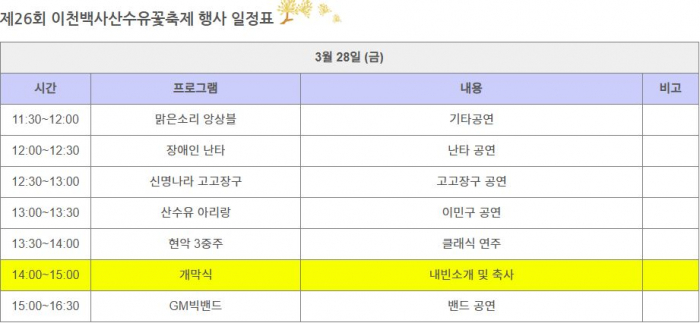 제26회 이천백사산수유꽃축제
