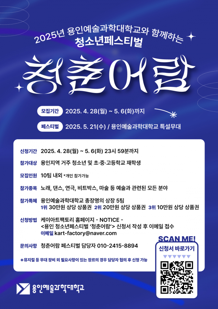 2025년 용인예술과학대학교와 함께하는 용인 청소년 페스티벌 ‘청춘어람’