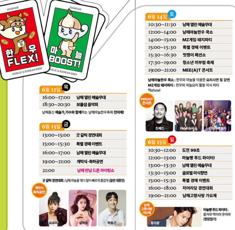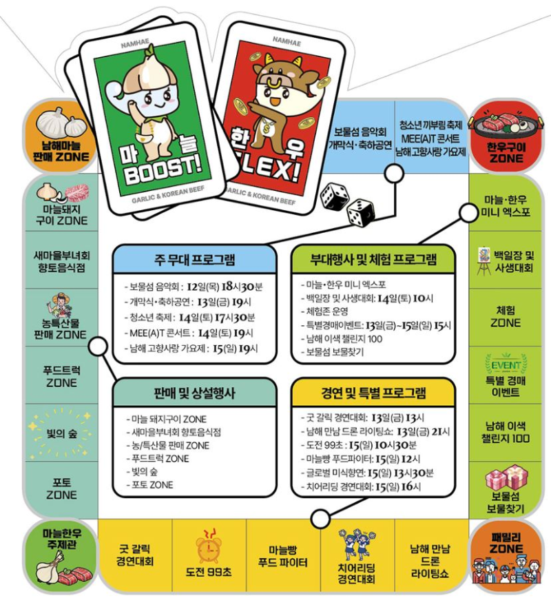- 주최/주관 : 남해군 / 남해마늘한우축제추진위원회