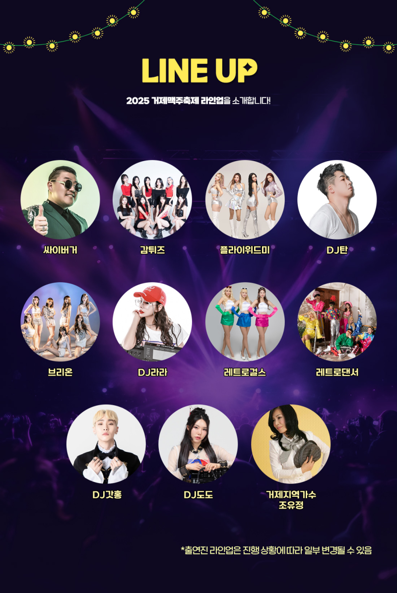 8월 29일 거제지역가수(조유정), DJ탄이, 브리온, 플라이위드미, DJ라라, 레트로댄서, 싸이버거, 감튀즈