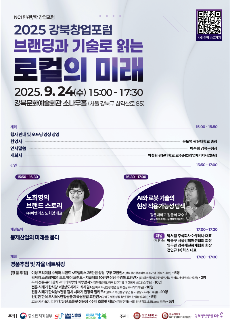 2025 강북창업포럼이 “브랜딩과 기술로 읽는 로컬의 미래”라는 주제로 개최됩니다.
