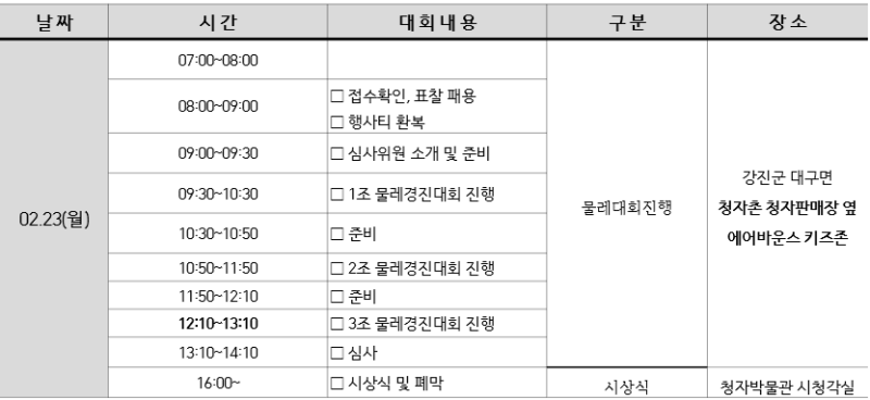 2026 강진청자물레경진대회 일정표
