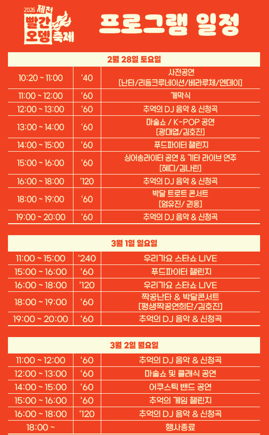 ○ 기 간: 2026. 2. 28.(토) ~ 3. 2.(월)