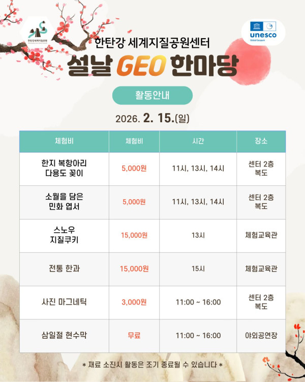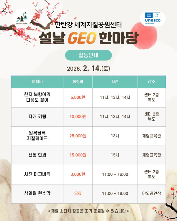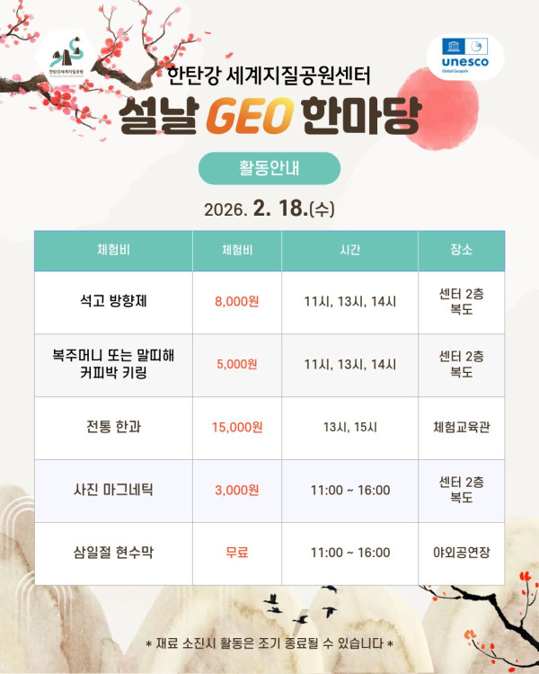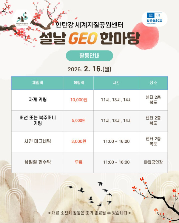 한탄강세계지질공원센터가 즐거운 설명절 연휴기간 중 다양한 체험행사 운영