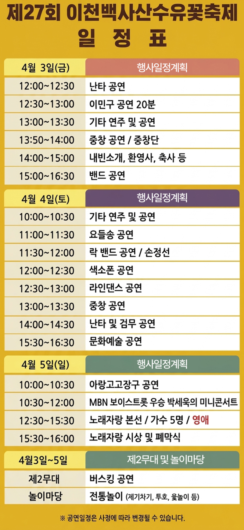 기간2026-04-03(금) ~ 2026-04-05(일) / 3일간