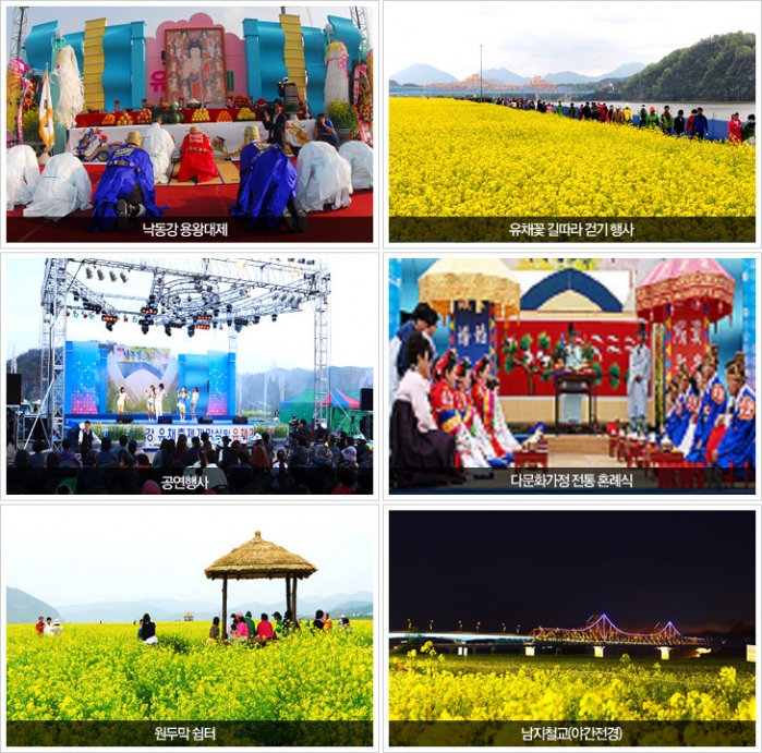 낙동강의 절경과 어우러진 한 폭의 풍경화 창녕군 남지읍 낙동강 유채단지에서 낙동강 유채꽃축제를 벌인다. 전국에서 단일면적으로 최대 규모인 60ha(18만여평)의 낙동강유채단지에서 나비와 벌이 꽃처럼 가득한 꽃단지의 아름다움을 전국에 알리고 관광객과 지역민이 함께 어울려 즐기는 축제를 목표로, 2006년 제1회를 시작으로 올해 8회를 맞이한다.