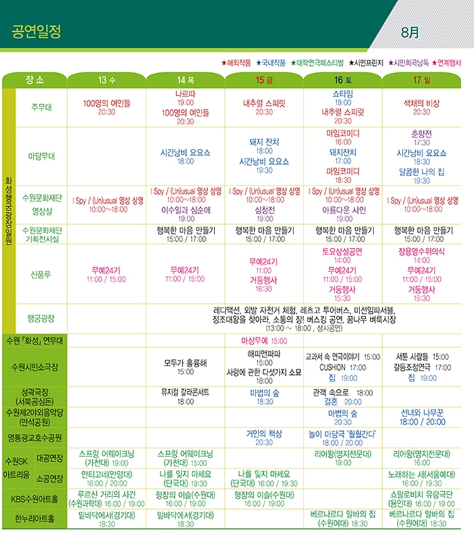 | 수원시민소극장 | 시민공동체연극 (13:00/16:00) |