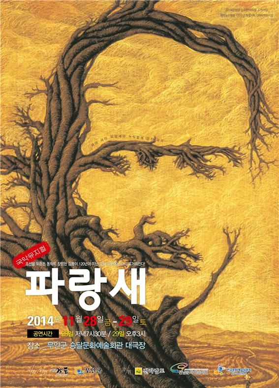 국악뮤지컬 <파랑새>는 120년 전 1894년 무안을 배경으로 벌어진 동학의 역사적 고증을 바탕으로 제작한 국악뮤지컬로 무안군 삼향면, 몽탄 차뫼마을, 석용리, 창포만 바우백이 장터, 불무제 등 실제 지역과 실존했던 인물을 각색하여 옴니버스 형태로 구성한 작품이다. 당시 암울한 조선의 상황 속에 동학군과 다양한 민초들의 사연을 대서사로 풀어냈다.