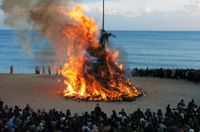 5층 규모의 소나무로 만든 달집을 태우며 묵은 해의 액을 모두 털어 버리고 새해소원을 빈다.