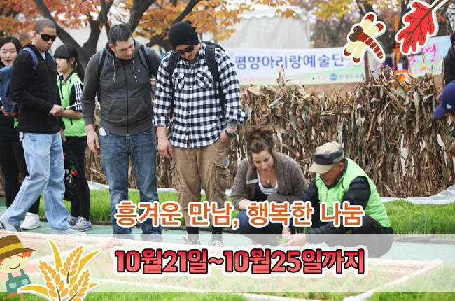 | 13:00 | 풍년마당전통혼례 동화마당마임 & 마술 햅쌀거리동동구루무 놀이마당흥겨운놀이 기원마당마당극-뺑파전 | 농경마당팔씨름/노래방 쌀밥카페쌀밥명인전 외국인송편만들기 햅쌀장터무지개 가래떡 |