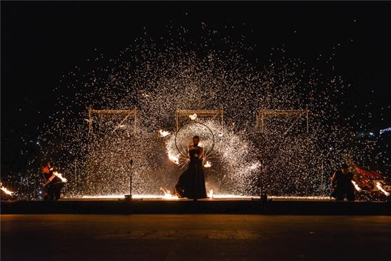 ▲ 개막놀이 플레이밍 파이어의 태양의 조각 공연