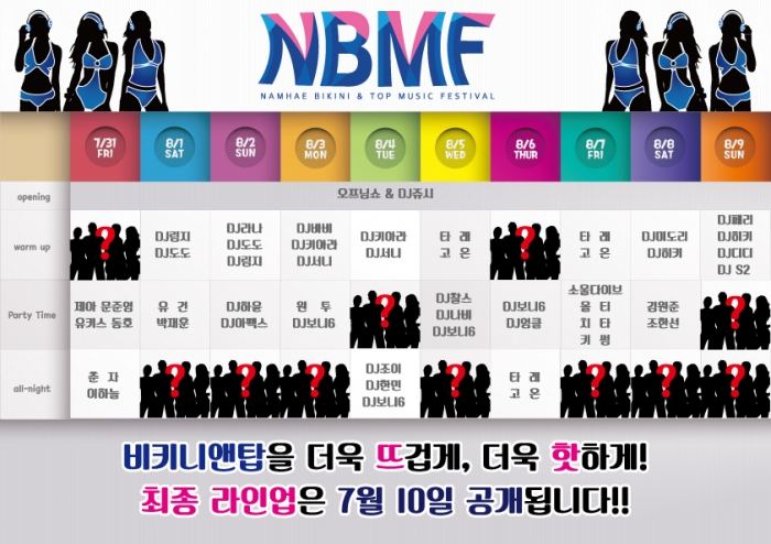 화끈한 여름의 비키니 해수욕장 뮤직페스티벌 라인업이 화끈하네요