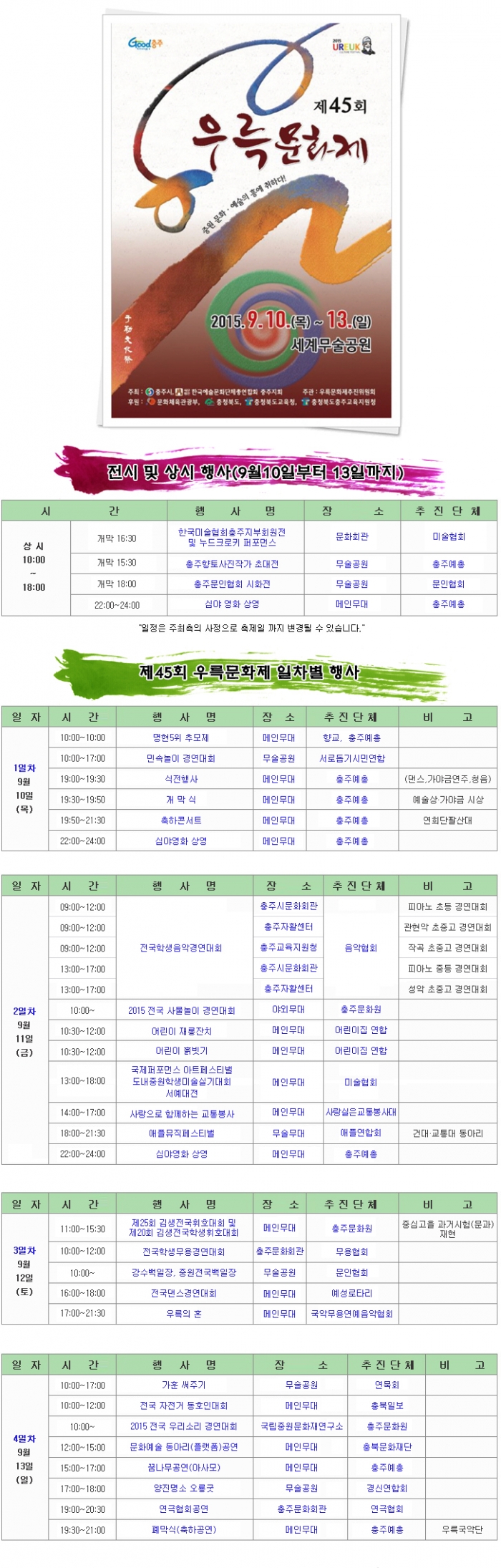 기간2015-09-10(목) ~ 2015-09-13(일) / 4일간