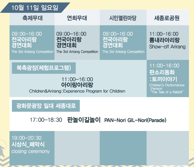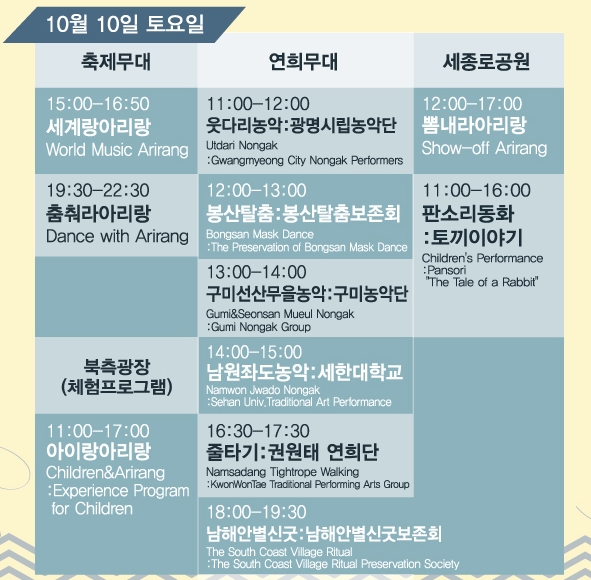 광화문 북측광장과 세종로공원에서는 전통문화체험프로그램 "아이랑 아리랑"