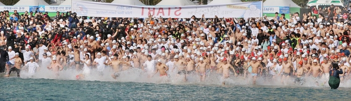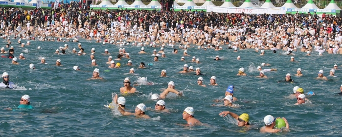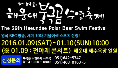 북극곰 수영축제는 얼음이 꽁꽁 언 북극해에서도 여유롭게 수영을 즐기는 북극곰처럼 한 겨울 영하의 차가운 날씨에도 바닷물에 뛰어들어 수영을 즐길 수 있는 축제입니다. 참가자에게는 겨울 바다와의 싸움에서 이겨냈다는 짜릿한 추억을 제공하며, 관광객들에게는 겨울 바다의 이색적인 볼거리를 선사하는 명실상부한 겨울 바다 최고의 축제입니다. 올해로 29회째를 맞게 되는 북극곰 수영축제는 국내외에서 2,000여명 이상이 참가하는 우리나라 최고의 겨울철 축제로 상상 이상의 감동을 느끼실 수 있을 것입니다.