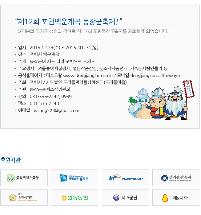 태그포천 백운계곡 동장군 축제백운계곡 겨울축제야생반합라면체험고구마구워먹기이동막걸리돌이돌마을