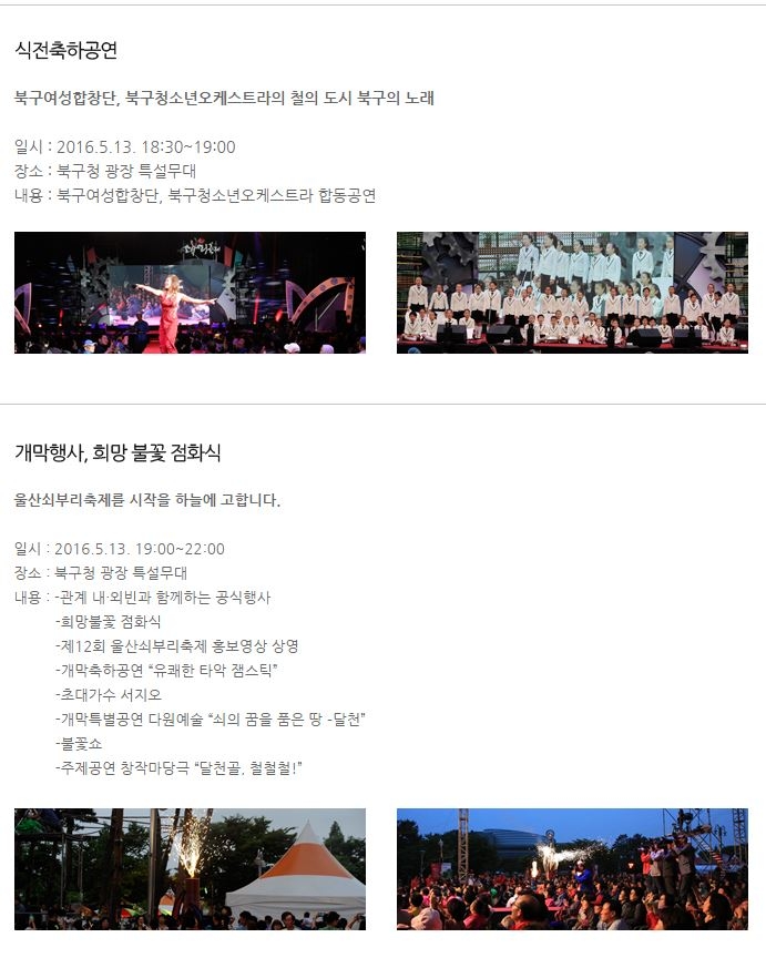 2016년 제12회 울산쇠부리축제는 세계적인 산업도시 울산의 정서에 걸맞는 가장 울산다운, 그러면서 가장 독창적인 산업문화축제로 거듭나리라 믿습니다.