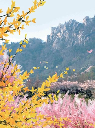 유달산이 가장 아름다운 봄꽃이 만개하는 시기에 유달산 둘레로는 개나리, 벚꽃, 목련 등 다채로운 봄꽃들이 만개하여 먼발치에서의 유달산은 가히 노란 비단수를 놓은 듯하며 벚나무의 분홍빛 꽃비와 함께 숨 막힐 듯 한 화려한 경관을 연출한다.