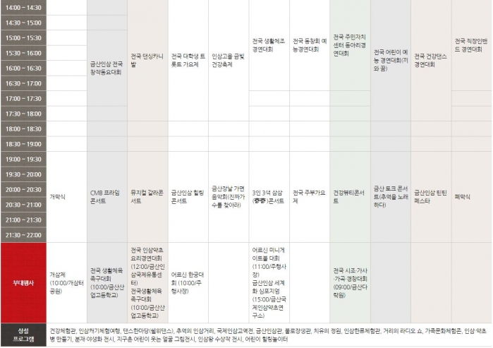 - 행사장소 : 금산인삼관 광장 및 인삼약초거리 일원