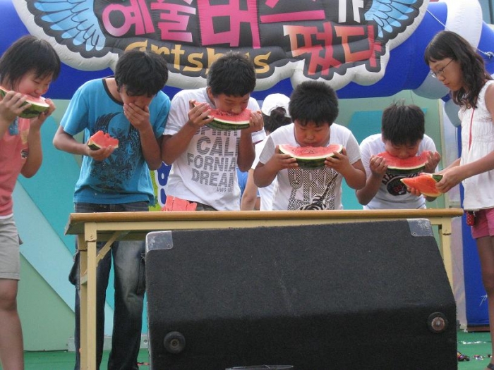13:00~14:00 - 깜짝 수박경매/수박 빨리먹고, 씨 얼굴에 붙이기 [특설무대]