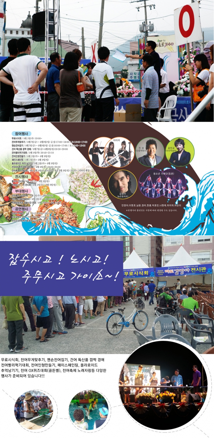 - 참여행사 : 맨손전어잡기체험행사, 전어무게 맞추기, 전어 맛있게 빨리 먹기 대회, 전어 골든 벨, 무료시식회,