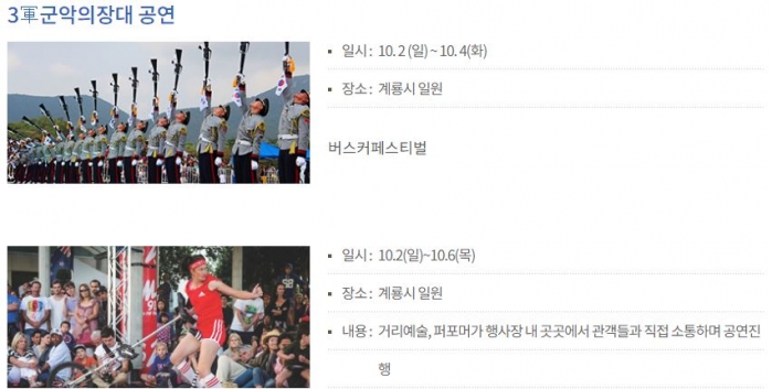태그계룡시군축제계룡 군문화축제육해공군축제군가경연육군퍼레이드군악대 의장대소림무예계룡축제계룡가요제신도안축제