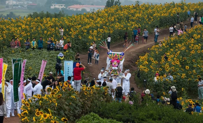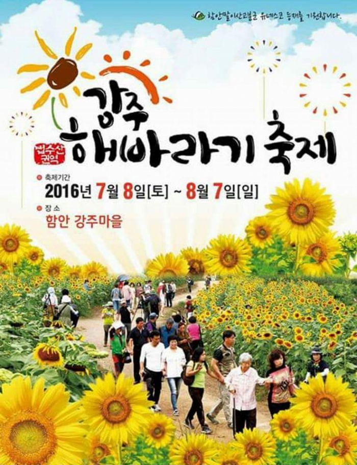함안 법수산권역의 마을 주민들이 힘을 합쳐 자체적으로 조성한 해바라기 꽃이 장관을 이루는 법수산권역 강주 해바라기 축제가 올해로 4회째를 맞는다. 전체 해바라기 식재면적은 법수면 일대 8만㎡에 이르며 전통과 문화를 부흥시켜 보자는 취지로 마을마다 지닌 끼를 모아 축제 한마당도 함께 펼쳐진다.