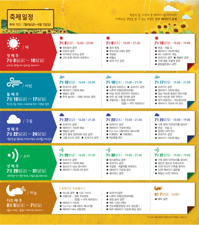 - 부대 및 전시행사 : 프리마켓, 농산물 경매, 포토존, 먹거리, 음료 부스