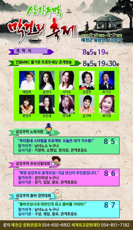 태그예천주막낙동강주막삼강막걸리축제삼강주모선발대회세계유교문화재단풍양면 삼강주막
