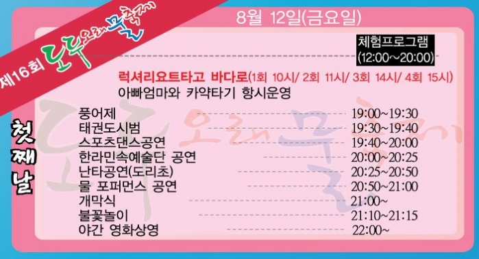 일 시 : 2016. 8. 12(금) ~ 8. 14(일)/3일간