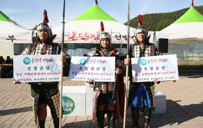 | 온달장군선발대회 (예선, 본선) | 10:00~17:00 | 온달관광지 삼족오광장 | 용인대 무도대학 | 추진위 | - 온달장군 선발대회(3종목) ※ 시상식 17:30/ 삼족오광장 - 용인대학교 무도팀 공연 (태권도, 택견, 검도 등) |