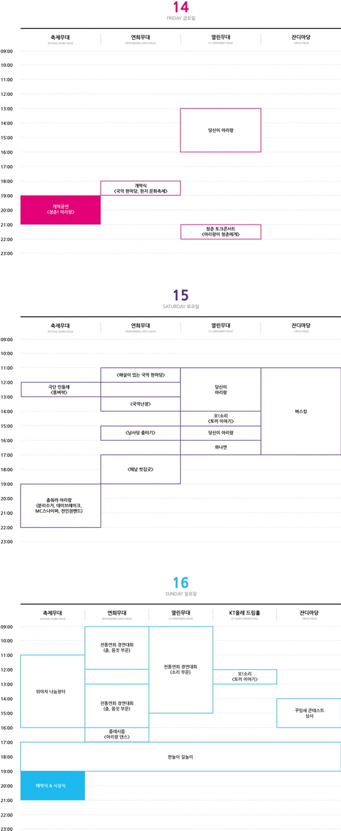 태그아리랑아리랑판놀이길놀이판소리동화 토끼이야기전통연희아리랑댄스뽐내라아리랑춤춰라아리랑아랑서울아리랑축제