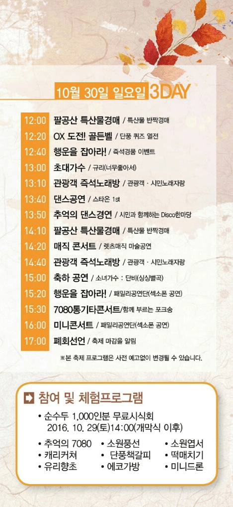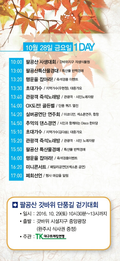 기간2016-10-28(금) ~ 2016-10-30(일) / 3일간