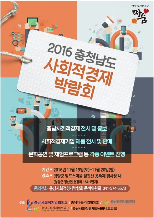 또한 2016 충청남도 사회적경제 박람회를 함께 진행하여 각종 전시 및 홍보, 판매, 공연과 체험 등이 준비됨.
