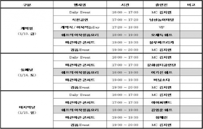 어묵먹는Day 퍼포먼스와 스타쉐프 오세득의 어묵일품요리콘서트 , 버닝소다, 블루파프리카, 정해진, 아이씨밴드, 7080밴드 등