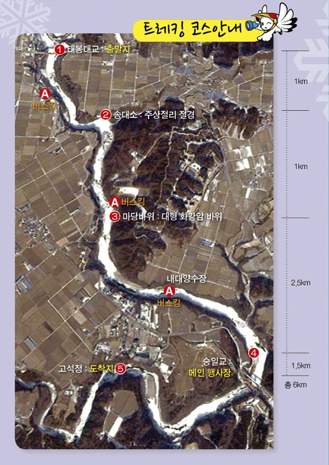 ■코스 : 태봉대교 → 송대소 전경 → 송대소 주상절리(~1km) → 마당바위(~1km) → 각종 화강암 → 승일교 → 승일교 메인 행사장(~2.5km) → 고석정(~1.5km)