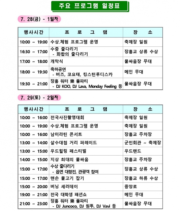 태그정남진 장흥물축제장흥 물축제장흥 정남진물축제여름축제편백숲 우드랜드탐진강축제