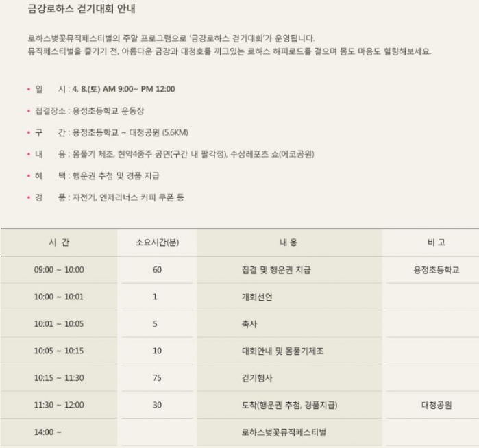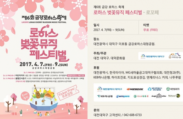 태그금강로하스축제대청호뮤직페스티벌대전대덕구축제로하스벚꽃축제벚꽃음악축제로하스걷기대회대청호 해피로드